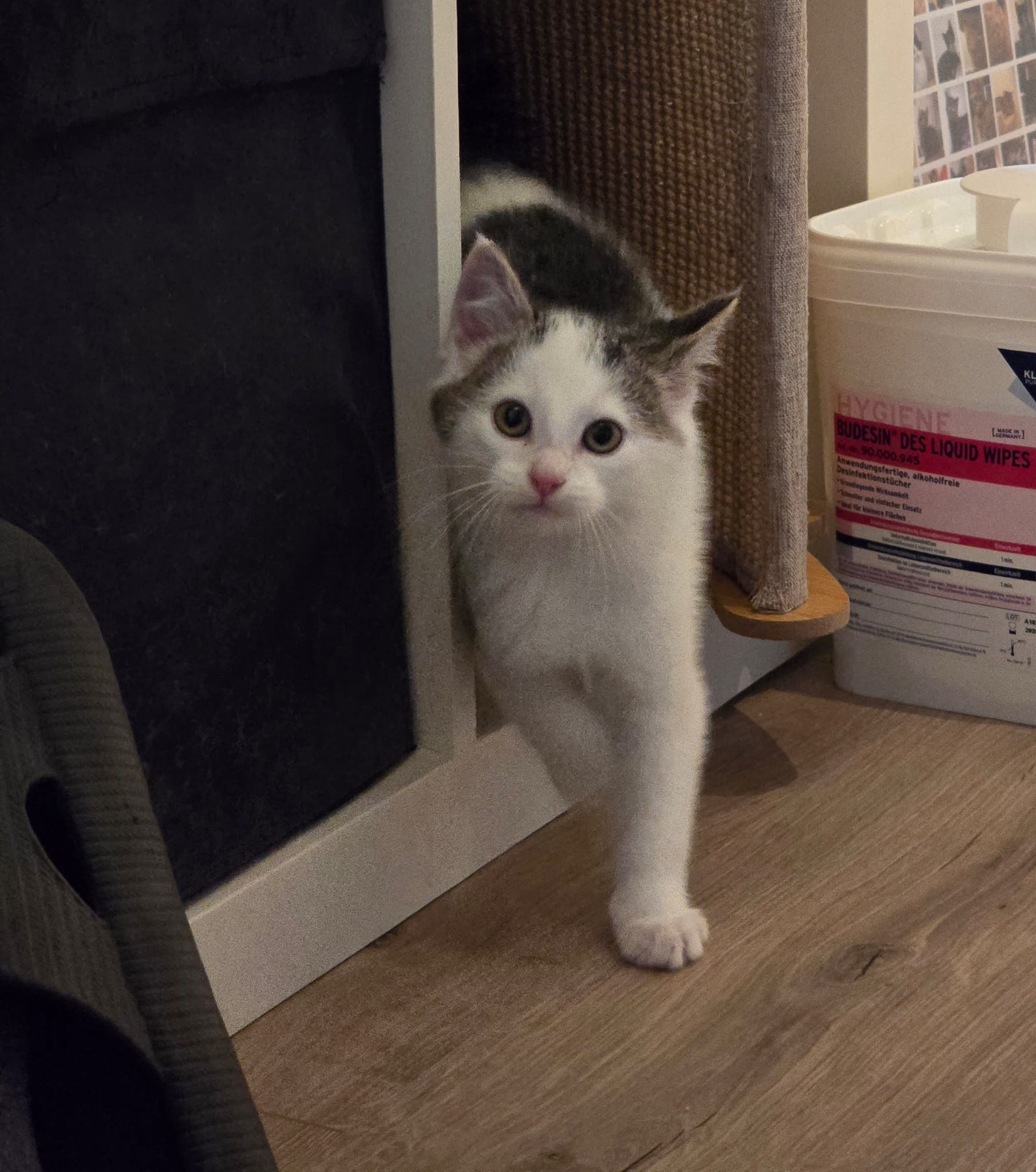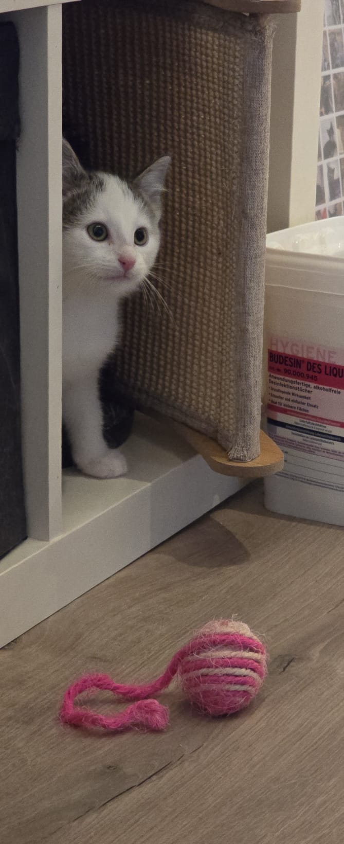 Unsere kleine Jamila ist ein bezauberndes Katzenmädchen mit einem sanften Wesen. Am Anfang zeigt sie sich noch etwas zurückhaltend und beobachtet lieber erst einmal alles in Ruhe. Doch sobald sie Vertrauen gefasst hat, verwandelt sie sich in eine richtige Schmusekatze – verschmust, anhänglich und voller Zuneigung.