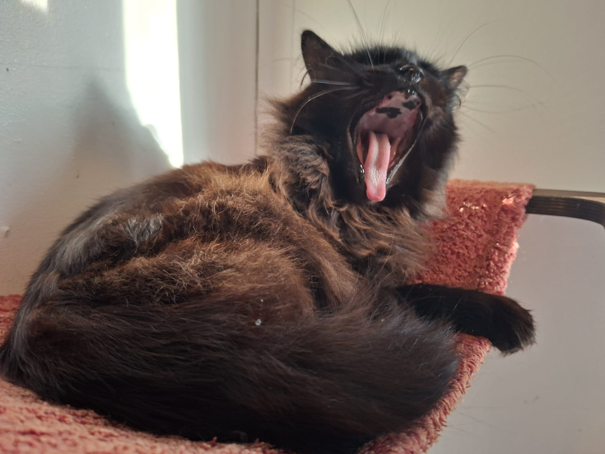 Er ist vorsichtig, aber nicht ängstlich, gut mit Leckerlis zu motivieren und liebt es, der Reizangel mit Federn hinterherzujagen. Rückzugsorte mit „Dach“ sind ihm wichtig – ob Höhle, Decke oder Schublade, hier fühlt er sich geborgen. Vögel beobachtet er begeistert vom Fenster aus, zeigt bislang aber keinen Drang nach draußen.