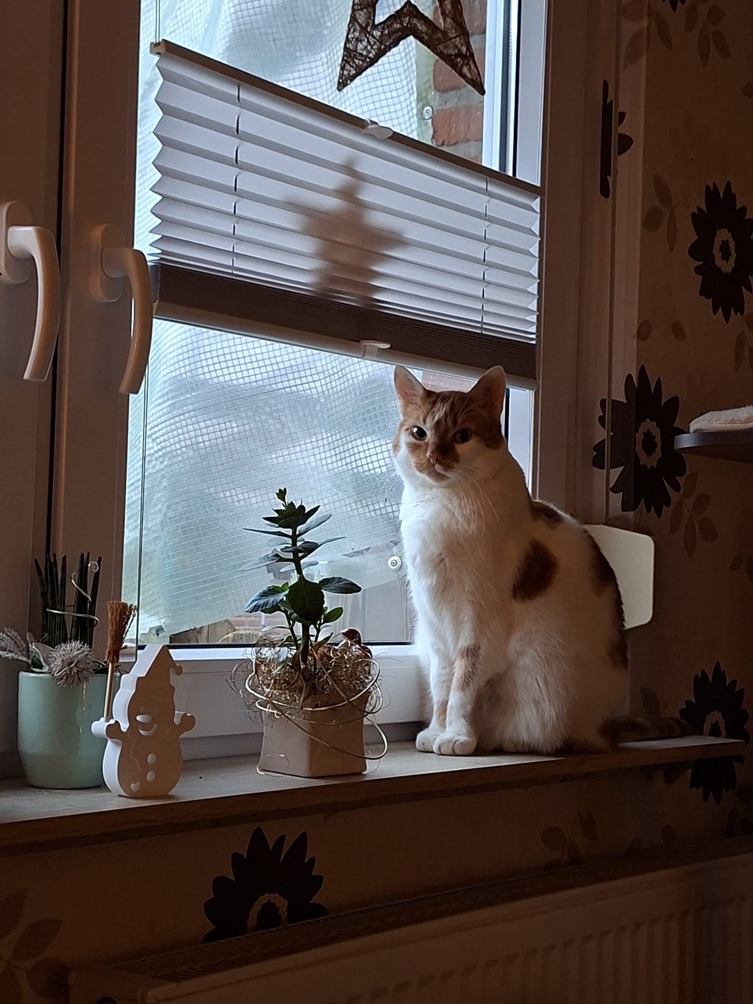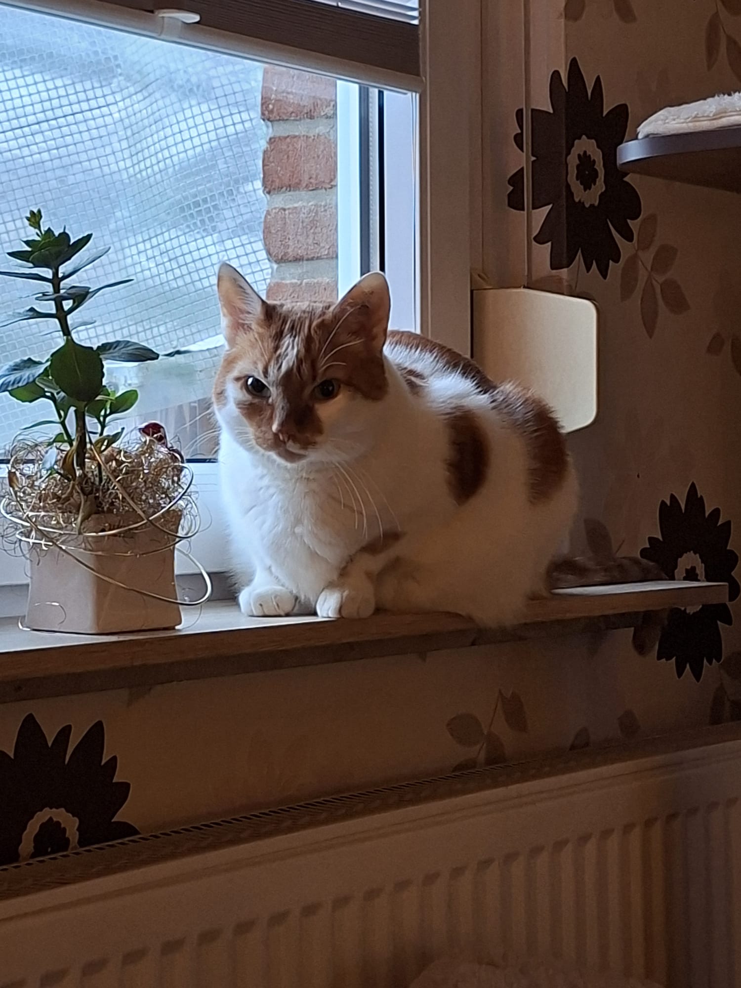Er ist vorsichtig, aber nicht ängstlich, gut mit Leckerlis zu motivieren und liebt es, der Reizangel mit Federn hinterherzujagen. Rückzugsorte mit „Dach“ sind ihm wichtig – ob Höhle, Decke oder Schublade, hier fühlt er sich geborgen. Vögel beobachtet er begeistert vom Fenster aus, zeigt bislang aber keinen Drang nach draußen.